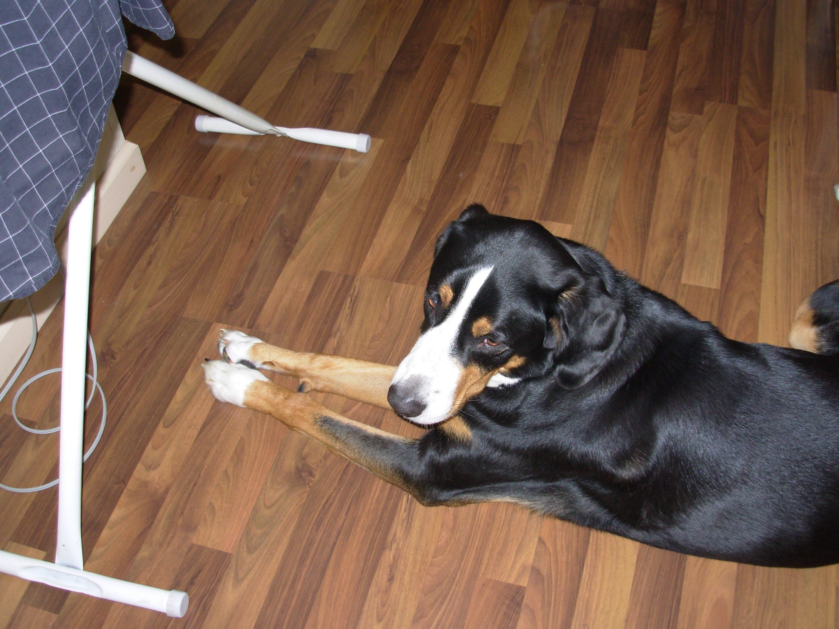 Going up and down the stairs takes some getting used to with her around.I am used to being followed everywhere by a 50+ pound dog and a 14 pound dog. Add another 98+ dog to the mix, especially on the stairs, and it gets pretty funny!
