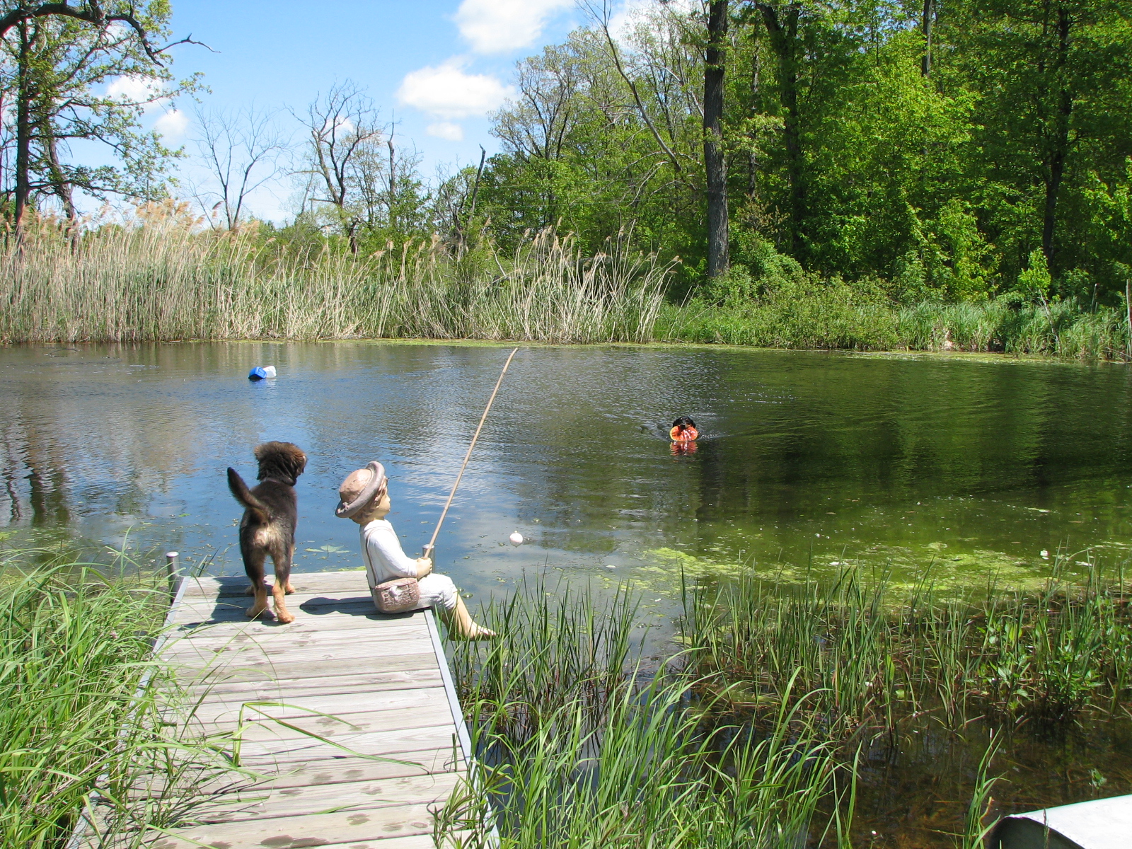 Here's a few piccyturez uf us. Look at all day land I gots to play and swim in!