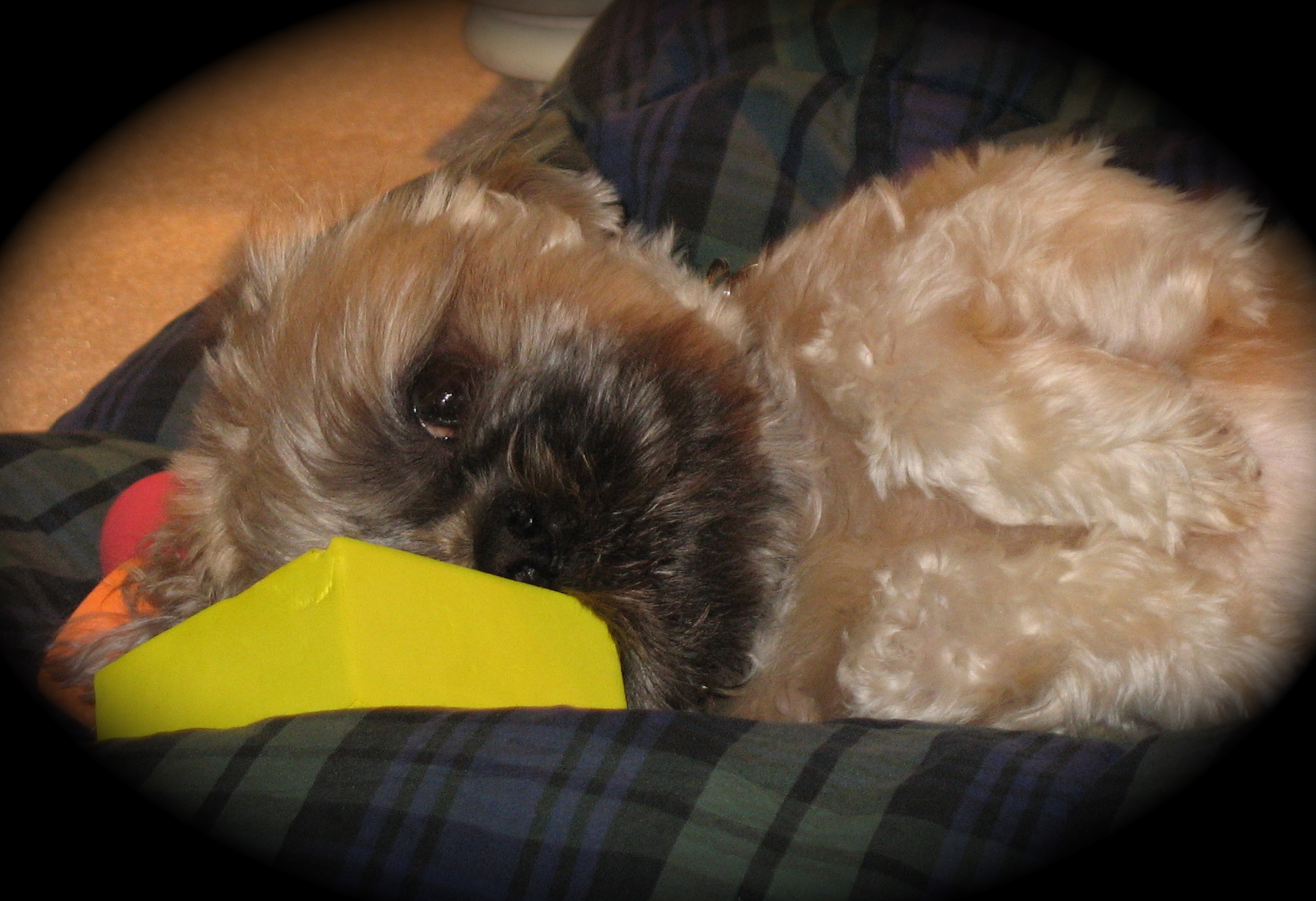 I like the 3rd picture. Is that a cheese shaped toy you're laying on?