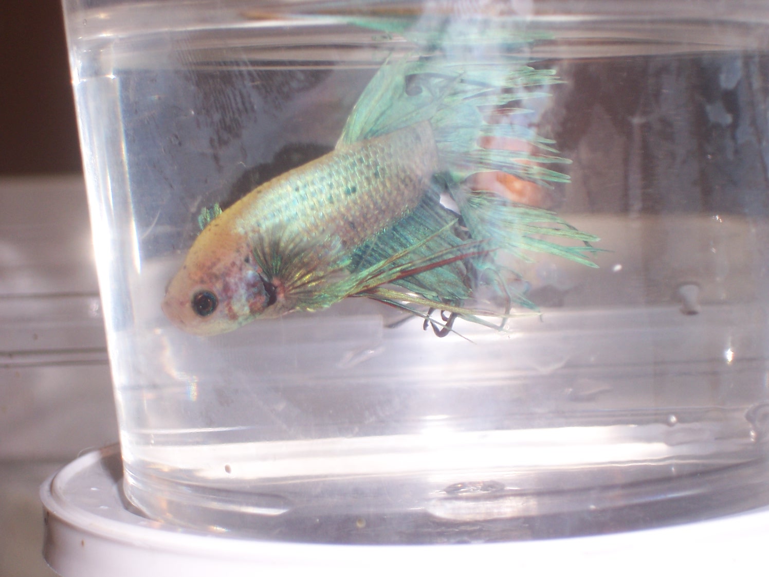 Well, he was in half a gallon until not too long ago when I finally was able to get him a new tank, and he doesn't seem really happy, so I think he'd be better off in a one betta household where he could be happier. The other 5 are always happy, but he's just kind of blah. And he was intended as a rescue in the first place, never a full time keeper. But he kind of tugged on my heartstrings and here he is.