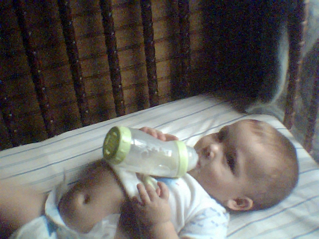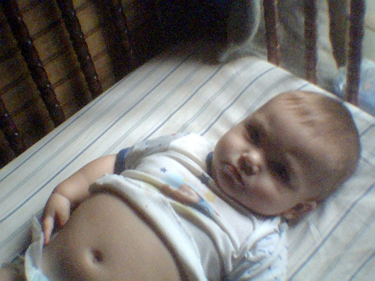 His name is Nathan and he was basically abandoned by his parents. He lives with me and my parents...He is 11 1/2 months old and it took his mother that long to decide that she "wanted him" (this was of course after she found out she was going to have to pay child support) There's no way I'm going to let her have him. She has an abusive history and has even had a restraint put on her by her adoptive mother. Errr...anyway here's my sweet little boy (yes, I do refer to him as "my boy")