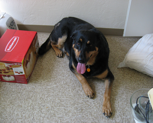 Trixie is about 6 years old. She's a spayed, UTD, half GSD/half Rottweiler. She is currently on Rimadyl. She weighs approximately 120 lbs.
