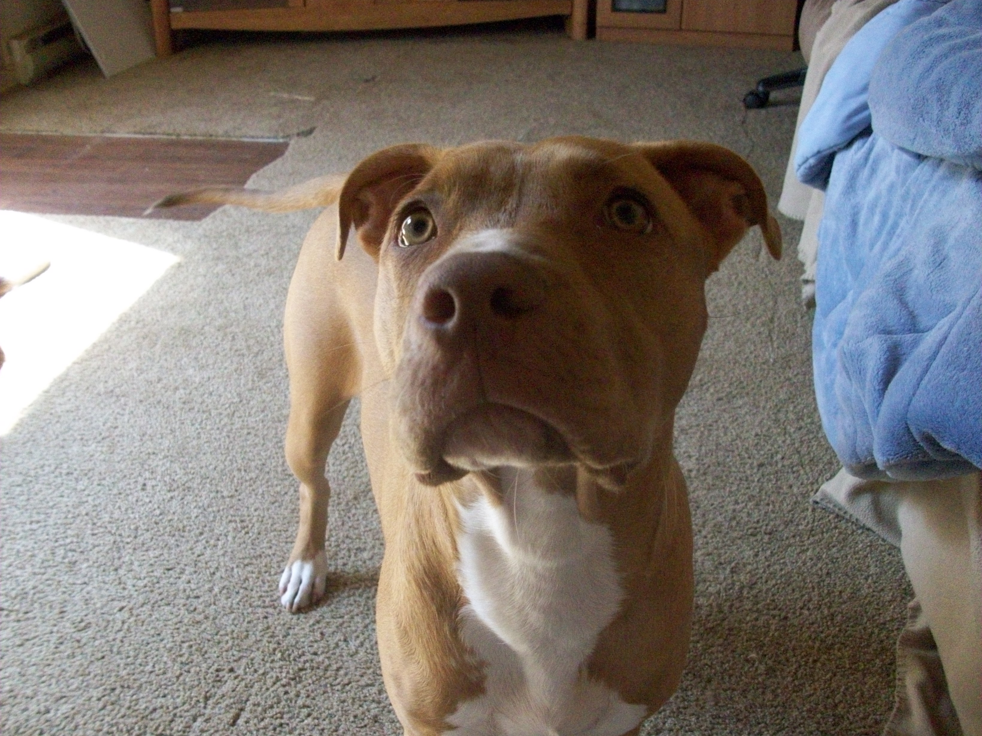 This is Honey, my pit bull puppy. She is 6 months old & weighs about 40 pounds. I watched her siblings being born, but unfortunately, Honey was born before I got there. She was my pick of the litter since day 1, & I love her!