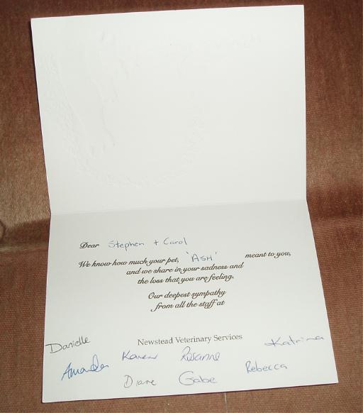 Thread: got this lovely sympathy card from my vets...