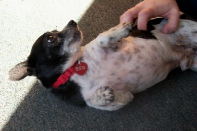 Joey the dachshund went home with my friend for a night, but she couldn't keep him. He is territorial, and bit her 3 year old. Grumpy old guy ... child-free home for him!