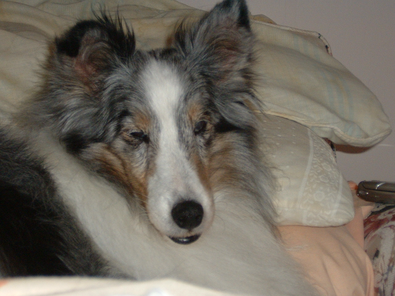 On July 31, 2005 my beautiful blue mural Sheltie had to be put to sleep after her 8 month long battle with mammary/ lymphoma cancer. I was privileged to have her in my life. By fluke I caught an add on a sheltie breeder forum stating that a lady in Tallahassee Florida was offering breeding services of 2 of her females on a lease of one year. This is when my lovely CC and her cousin Rosy came to visit me. Needless to say my Sweet CC did not return home as we shared a sacred bond know one ever dared to invade. I was fortunate to have her about 8 wonderful years out of her 13 years of life. Its been very difficult living my life without her. We have since stopped breeding these days and although my family has 5 other dogs, my life is not empty with the desperate longing for my best friend. This is the feeling that only a surviving human companion can express after a loving pet has perished. Those who do not have the special forever in love connection with ones pets just don't seem to understand the great feeling of grief I feel. Only 2 months gone and it already seems like an eternity.
