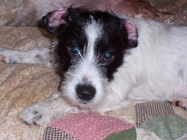 Oh my, Bob would be so spoiled at my house! I have a very soft spot for scruffy little faces. He looks just a little like my Callie June, a wire-haired Jack Russell mix. I've often wondered if she had a little beagle in her as well. She has the shortest little legs! Sorry, I had to attach the photos--I'm not very good at doing it the other way.