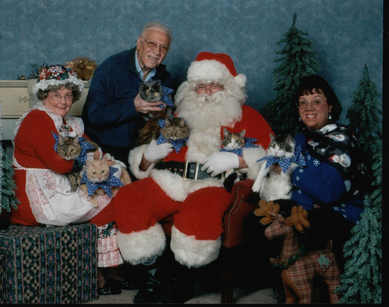 A local credit union donates their office space for a Saturday and Sunday. A professional pet photographer donates her time. She comes early Sat. AM and sets up her lights and camera. She does a different background scene each year. Santa & Mrs. Claus - a real husband and wife couple - donate their time to pet fundraisers from Oct 15th to Dec 21st each year. We have had this photographer, and this Santa & Mrs. Claus for 18 years!