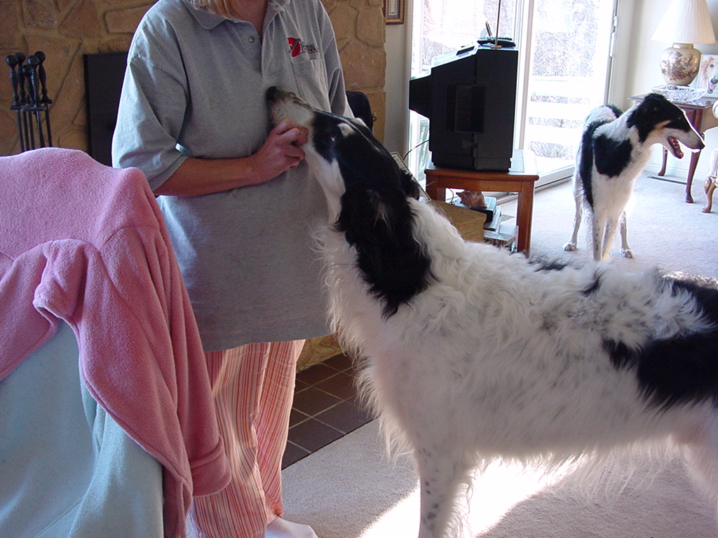 Zubin is such a cutie patootie!!! Who has the cast on in the 5 month pic???? and who is showing him?? I just love those Borzois!!![]()