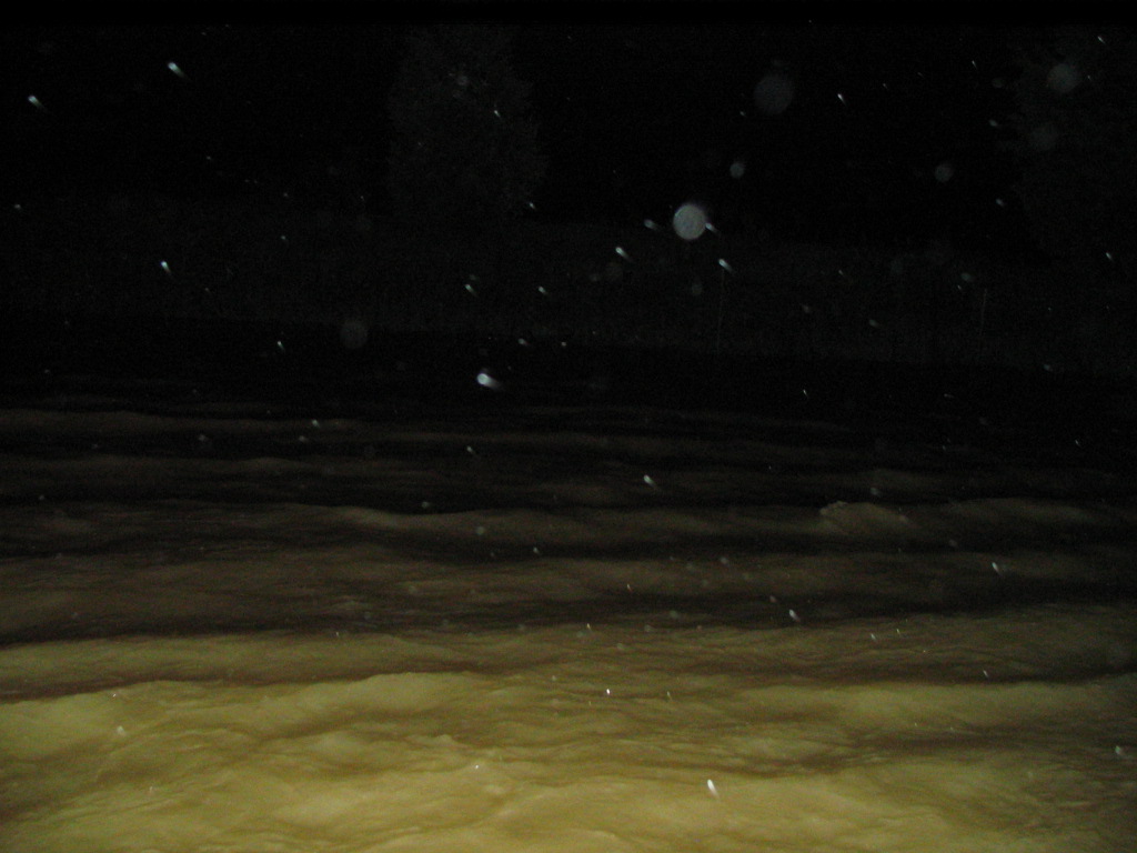 We were really surprised that the road was still open...we thought we were going to float away. I'm just glad we were in the Durango and not the van. I did take some picture although it was still really dark (around 6 am or so). At least you can see how high the water was right beside my door and how high it was on the road signs. Very scarey.