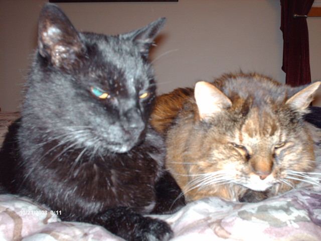 I'm trying to stay positive for her but after she gets all these meds in her, she's to go back to Dr. Lee on Wednesday evening to be retested to see how they're working. If there is no improvement and she continues the wailing, I may have to help her to the Bridge. She's had too long and healthy a life for her to suffer now just because I want her to be w/me for a little while longer. W/Puddy it was different; she lived 4 1/2 years less time than Pidge and she had one challenge after another, so I felt I owed her. W/Pidge, I feel as though I owe her, too, but in a different way. I owe her peace.
