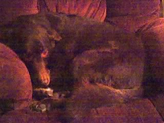 Though not related to Max's recent medical emergency, his voice started to go. He sounds hoarse and the poor soul can no longer howl at the sound of a siren. The vet suspected nerve damage in his throat from diabetes. Over the summer things progressed from bad to worse. Now he has severe retching when he wakes, day or night. He often spits up during these long gagging/retching episodes. His breathing is always loud but his oral colour stays a nice shade of pink. He has only choked once while eating.