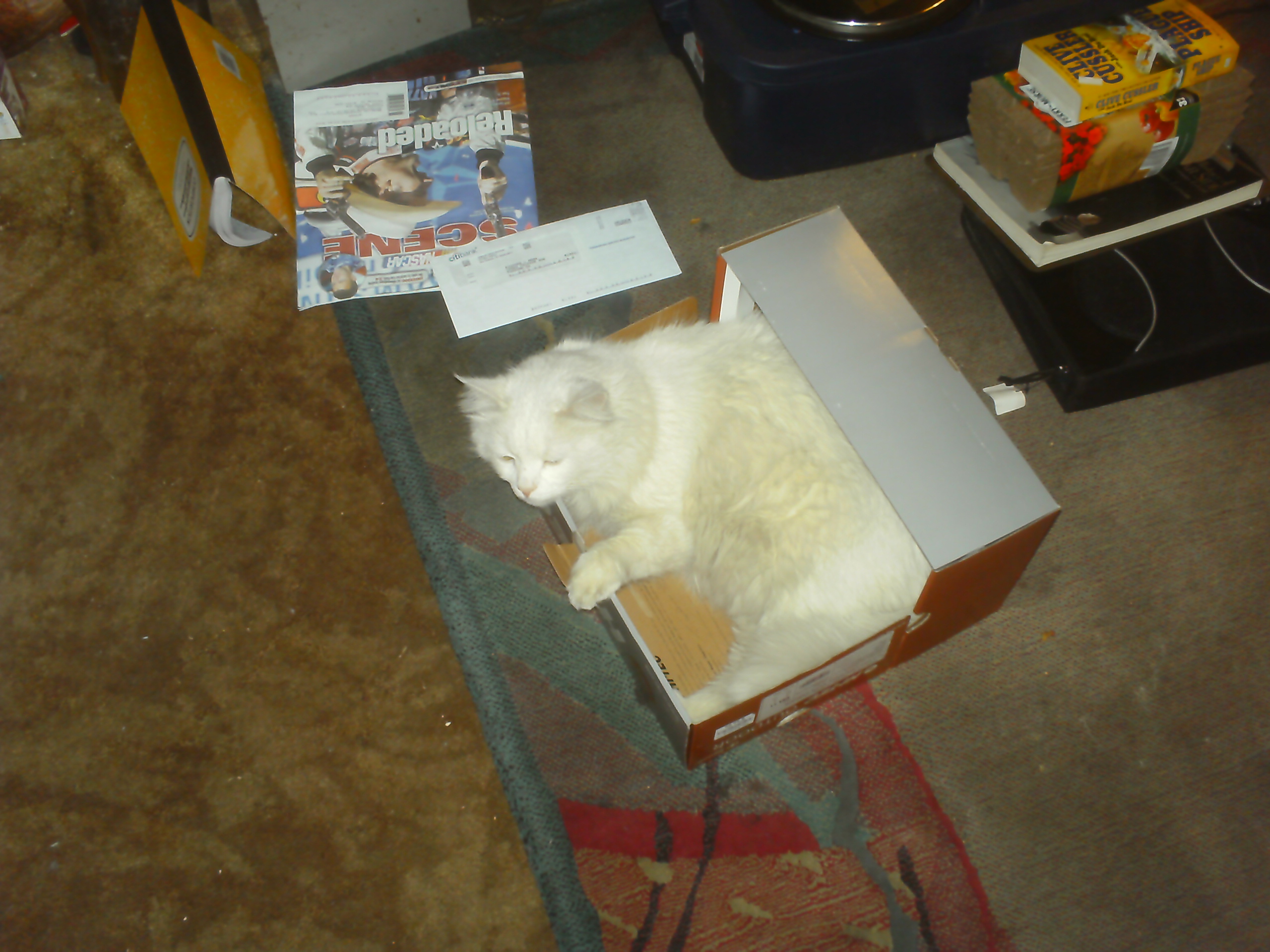 Richard I am suprised at you! You know that one of the main CAT RULES is all boxs are the cats