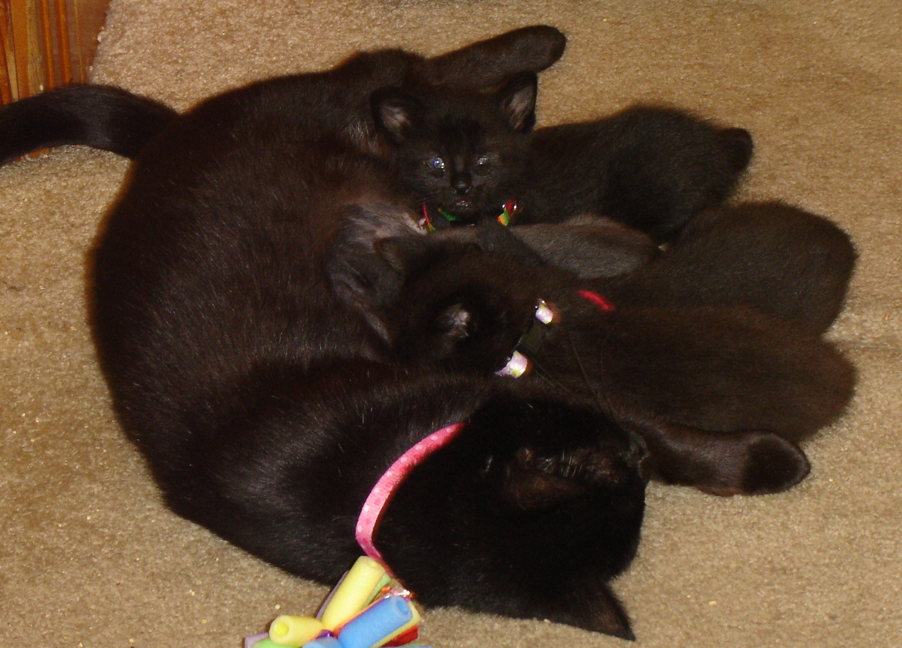 Such gratuitous black kitteh cuteness! Good job with them...they seem very well socialized!