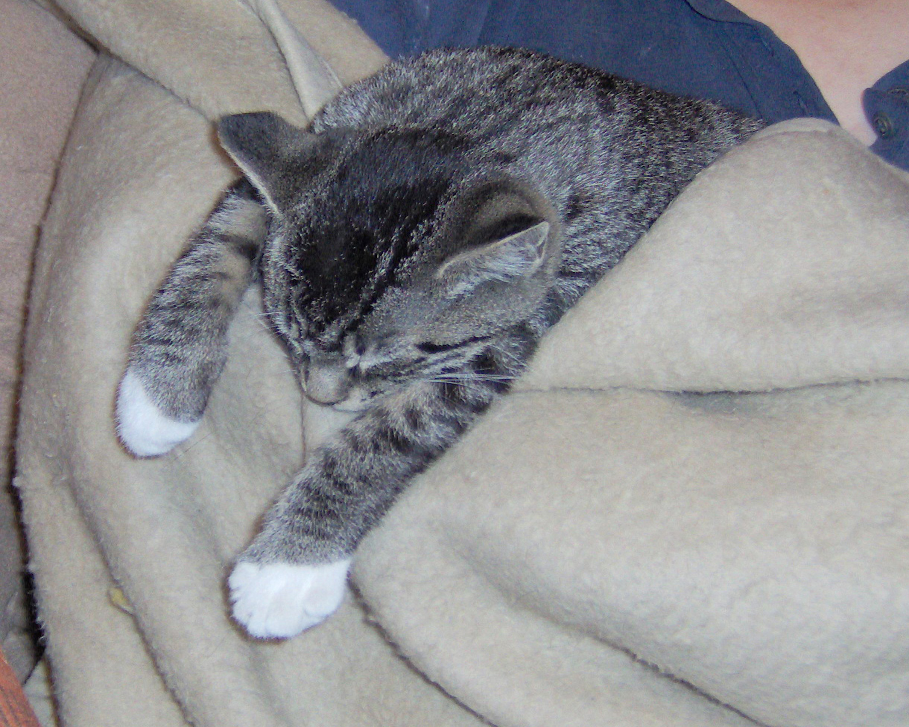 My fiancee and I are newly relo'ed to lovely Georgia, but this time of year, even here, it gets cool at night..... and we are stuck for a while with ONE TWIN bed in the house.... and on a cool night, that twin has to be (ahem!!) "SHARED" with 4-5 of these creatures, AND a 60-lb. 10-year-old golden retriever......