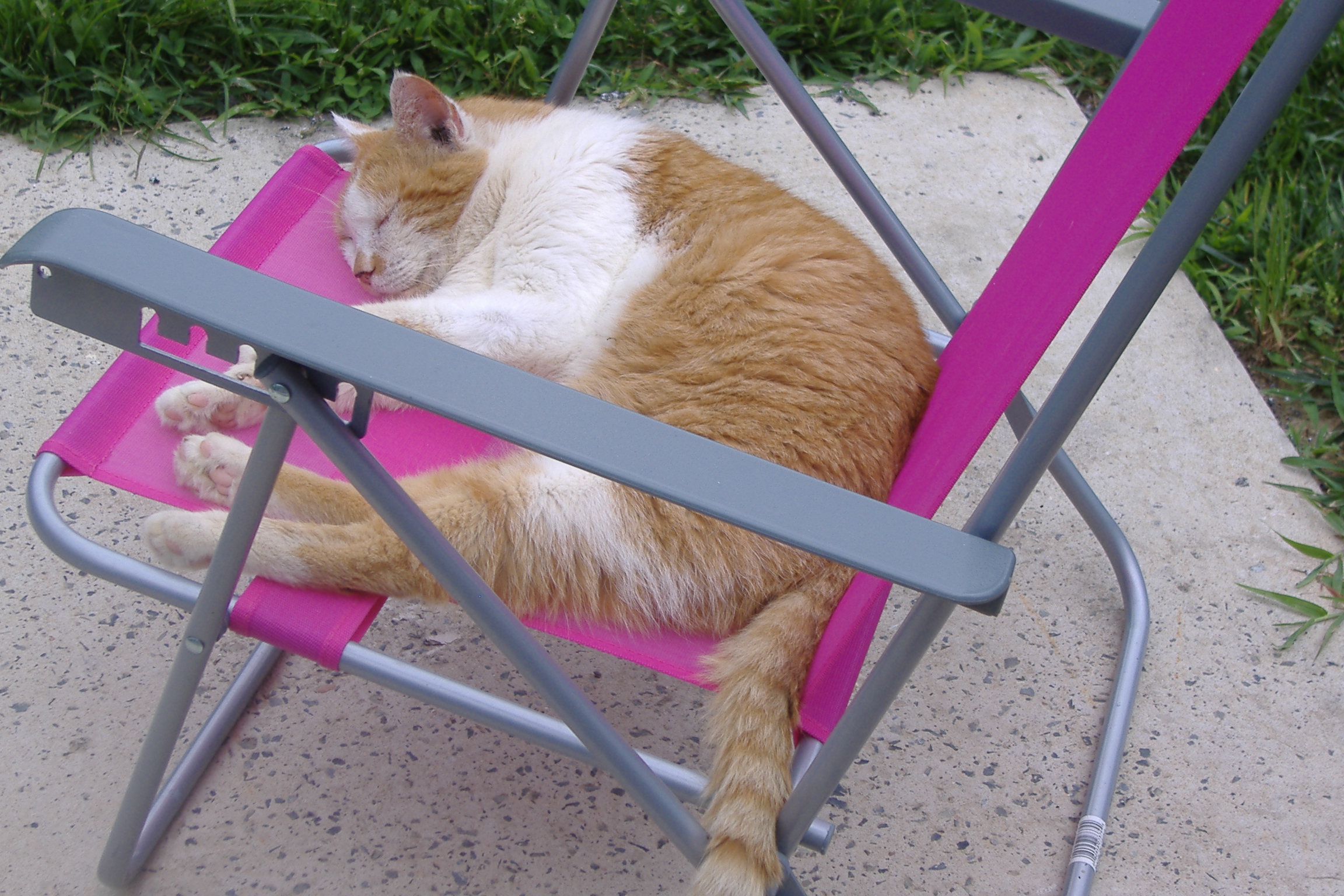 Yup - sure do. His name is Sherbie and he's "The Stray That Came To Stay" - 8 years ago - and never left. I guess I can't consider him a stray anymore tho, since he has made himself right at home. See pics - need I say more???![]()