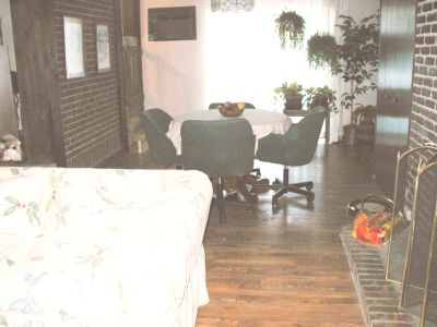 Here are a couple of pictures I found of our den and our hallway that Scott did with the Sam's flooring. We used such a light color because the Pergo in the kitchen was already here when we bought the house and we had to try and match it.