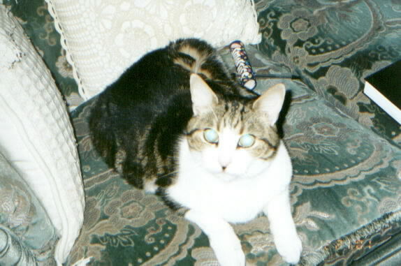 Third trip-spay surgery -Cat carrier is placed in kitchen day before the visit with blankie - Ritzy runs off but eventually gets used to the idea and actually takes a little nap inside. Something in that little kitty memory snapped, though, when it came time to "go" she quietly disappeared...was located under a chair between a bunch of magazines. Two humans were required to muscle Ritzy into carrier, and pitiful kitty noises gave mommycat the guilts for weeks to follow. AT this point, it became evident to me that Ritzy had one of those "kitty with a tude" warnings on her chart - the vets and technicians seemed almost relieved that she was going. More pitiful moans on the way home and I swear she milked the "wounded kitty" thing for all the spoiling mommycat could muster!