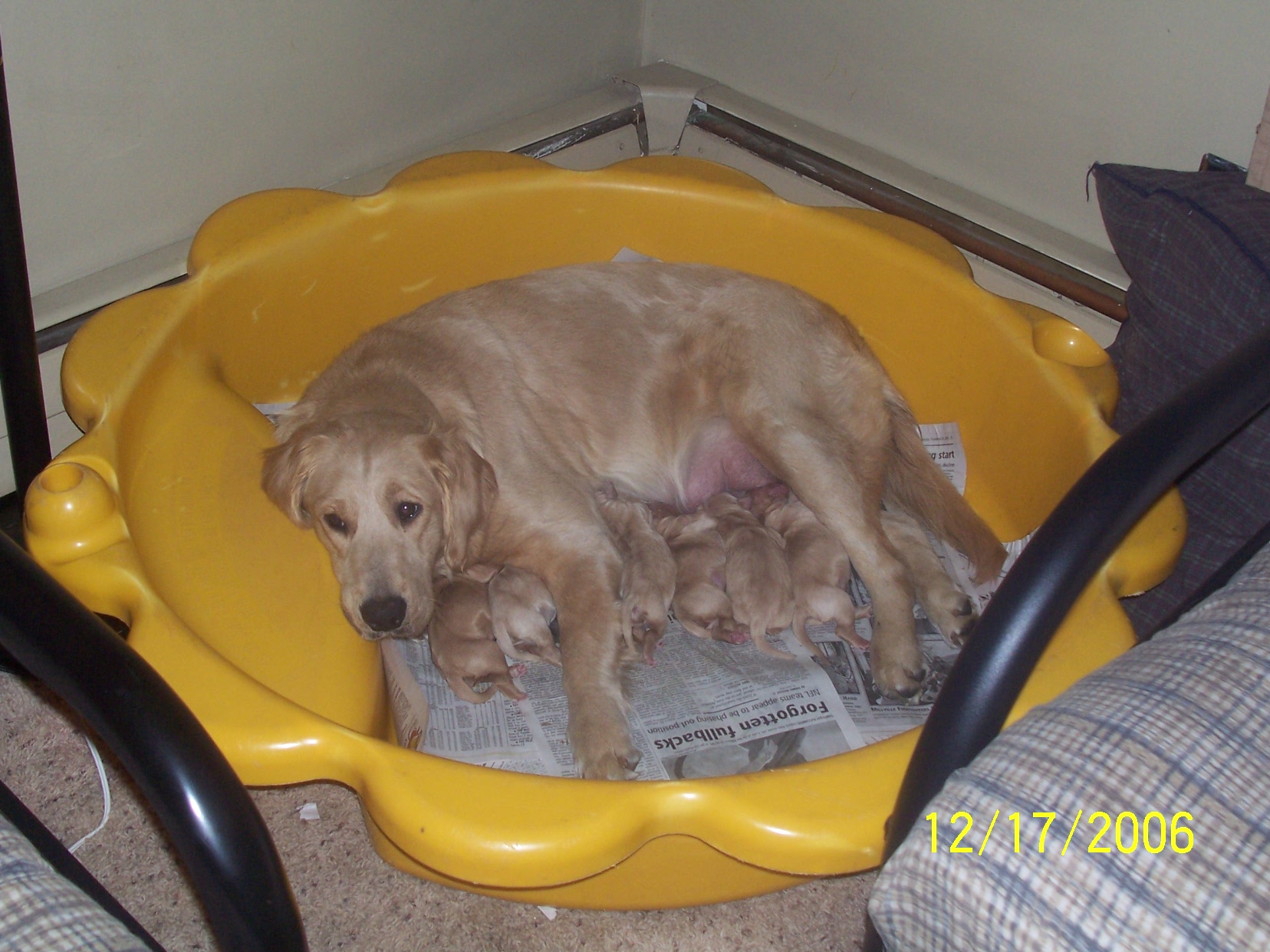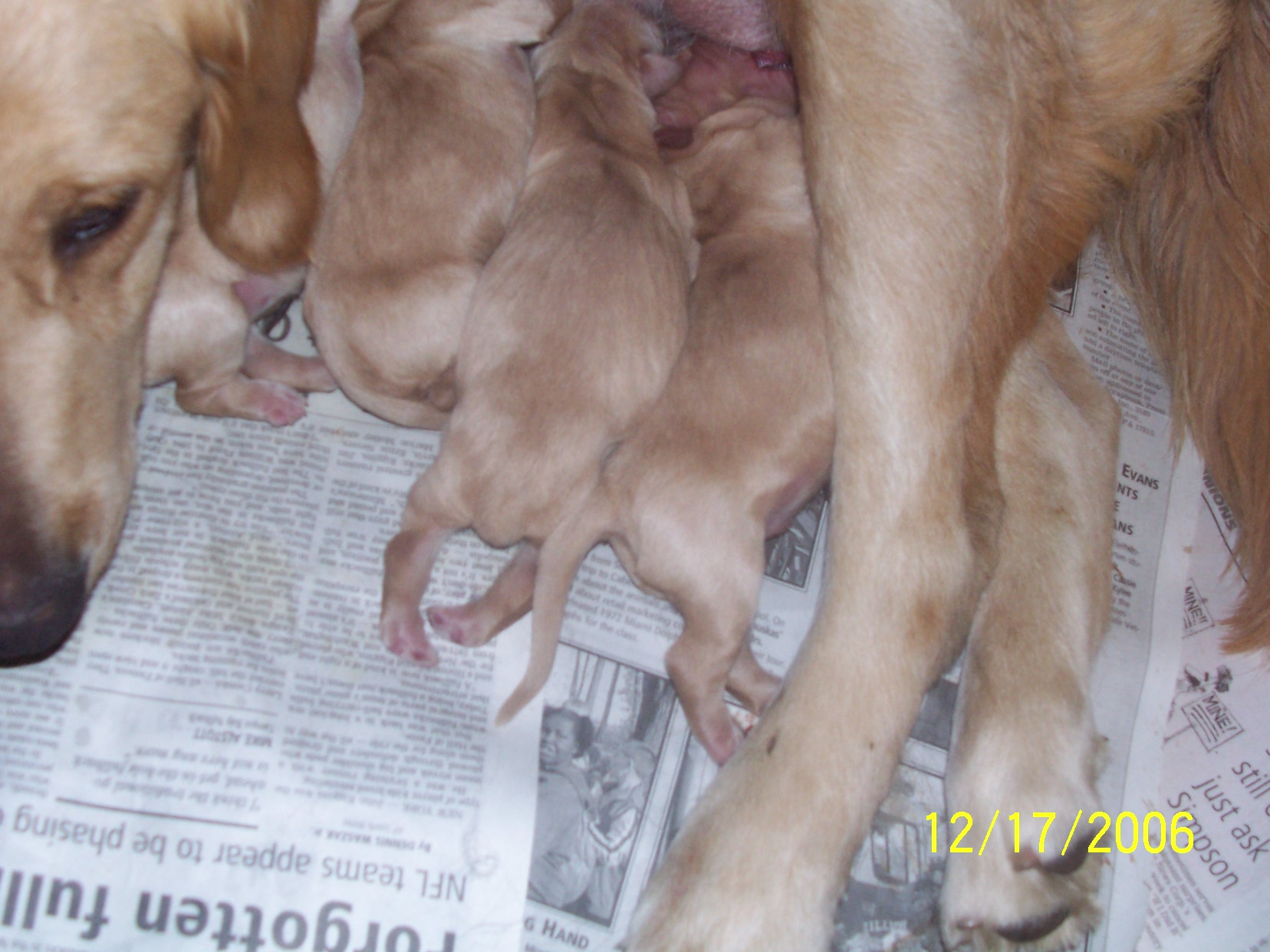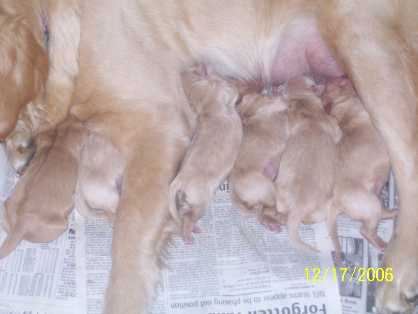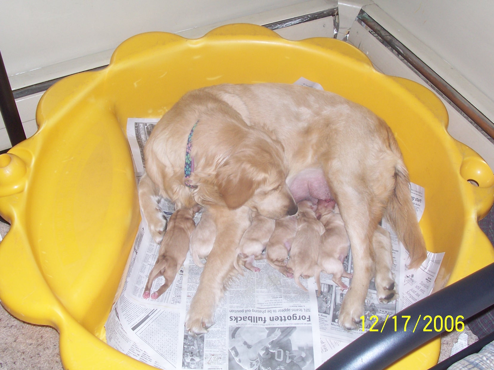 sorry it tookd so long I had to go to work so my parents stayed home with her!! we have 4 boys and 2 girls so she only really had seven because another little boy also died.... Im trying to get pics momma isnt enjoying it too much and is very protective of her babies, and tomorrow im calling the vets to get her a shot and to check on her since they were closed today and I didnt want to make her travel so for to the emergency vet.... the last one born was a little girl around noon and she is the runt of the pups and was also the only breech puppy!