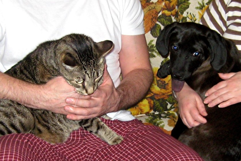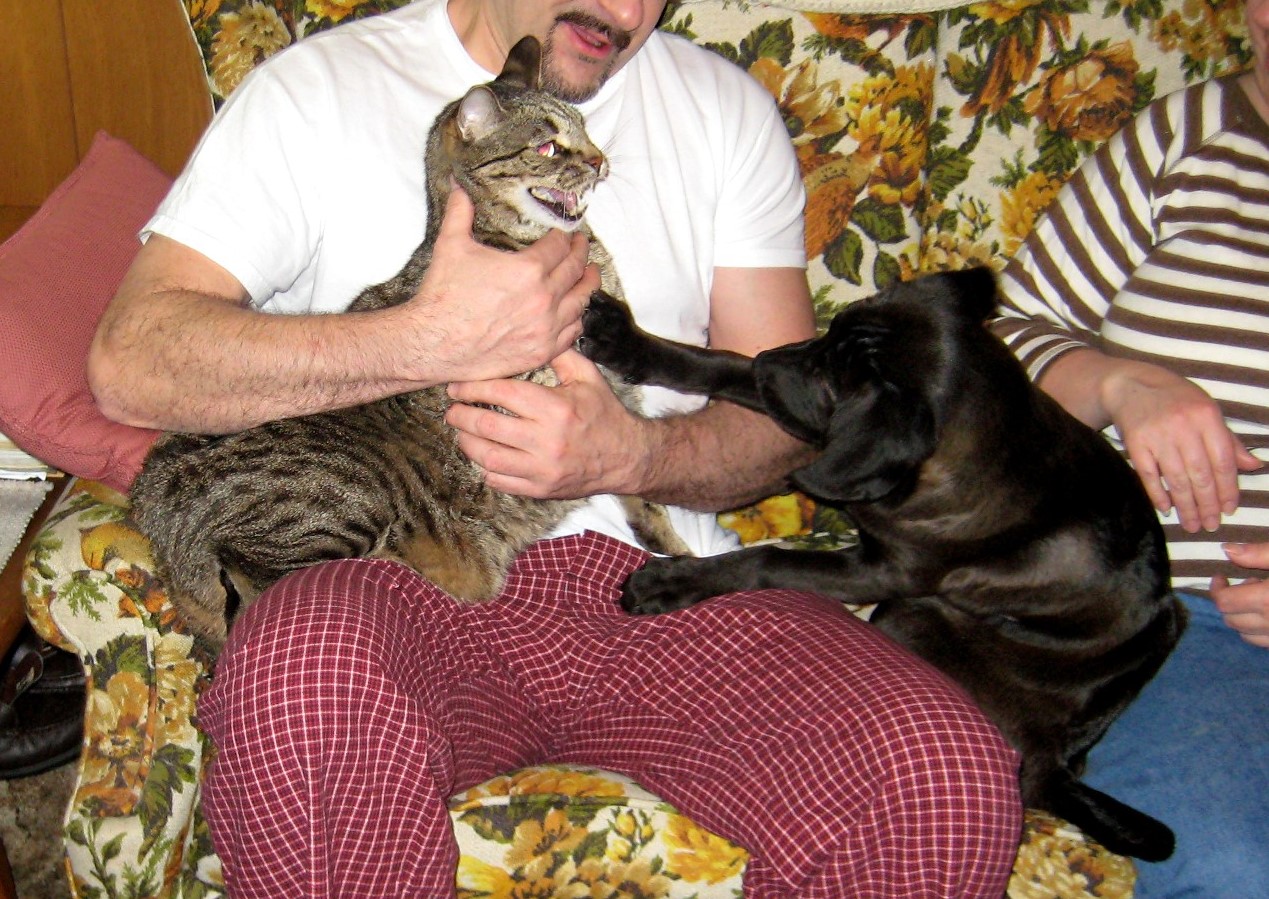Took her to the parents over the weekend and she got to meet my brother's cat Max. Zoe and Max got along quite well until Zoe decided the cat needed his face washed.