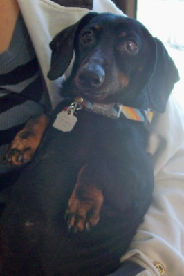 Joey the dachshund went home with my friend for a night, but she couldn't keep him. He is territorial, and bit her 3 year old. Grumpy old guy ... child-free home for him!