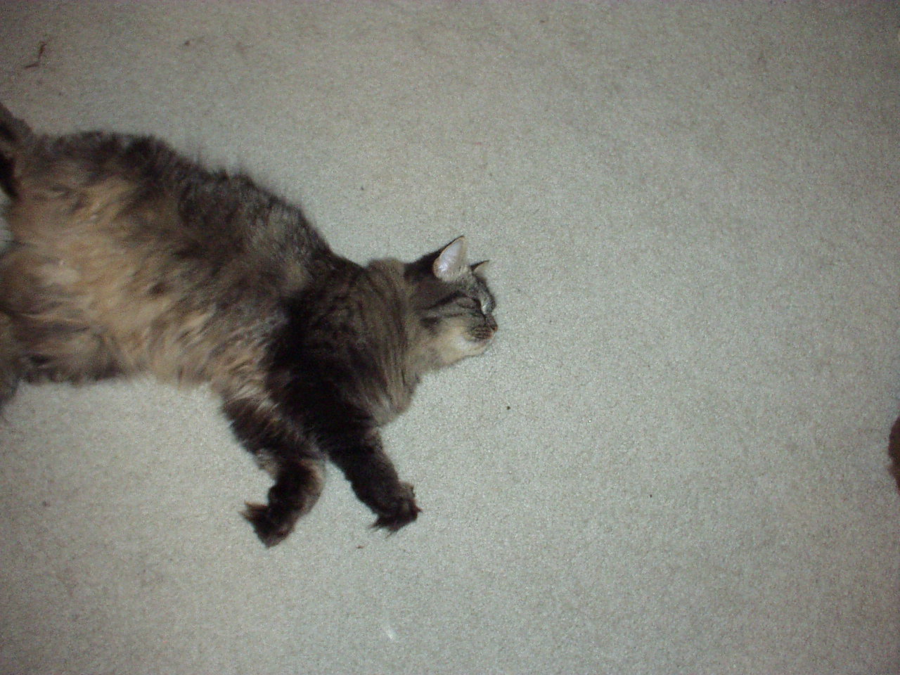 My husband has FINALLY agreed to pull up our NASTY carpeting in the upstairs "kitty room" and downstairs living room and hallway. We plan to put linoleum tiles upstairs and Pergo laminate floors downstairs. This is all "supposed" to take place after the holidays AND when we have the money to do it. With all that is going on with my daughter right now, it might have to wait. *sigh*