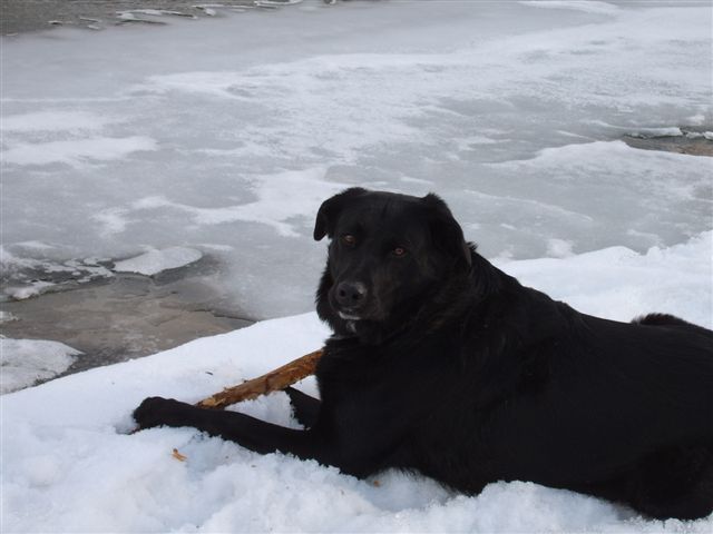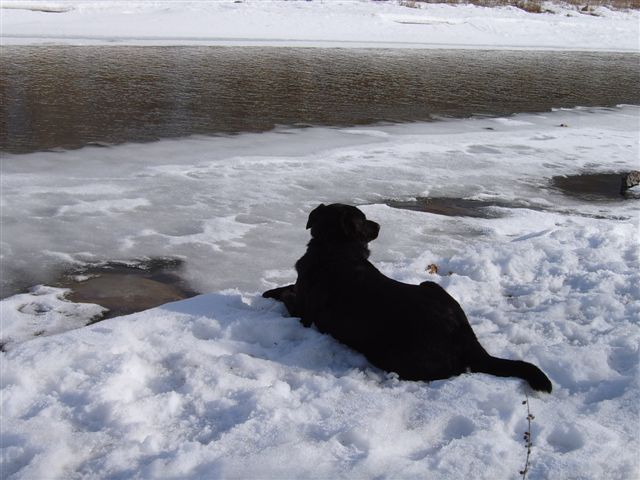 Here's a couple of pictures of Russo waiting for the ice to melt so he can go swimming