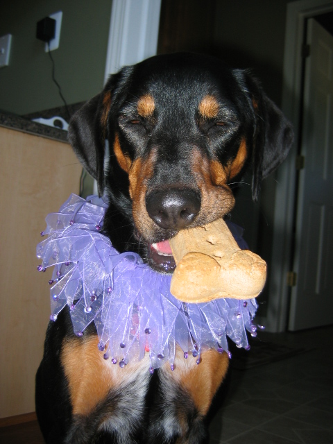 And in da lazt wun my mom gotz me a nice neck-y thing and a yummy big big milkbone! MmmMMmm.