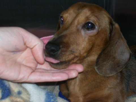 This pictures were taken about a month and a half ago when he got neutered. Poor boy has so many problems. During his surgery he had an allergic reaction and his eye swelled up. I feel so bad for him. I now have his younger brother and sister. Both were born blind, though sometimes you would never guess! Thankfully I convinced the lady to neuter her male. Thank god! So now I'm up to 4 doxies. hehehe.