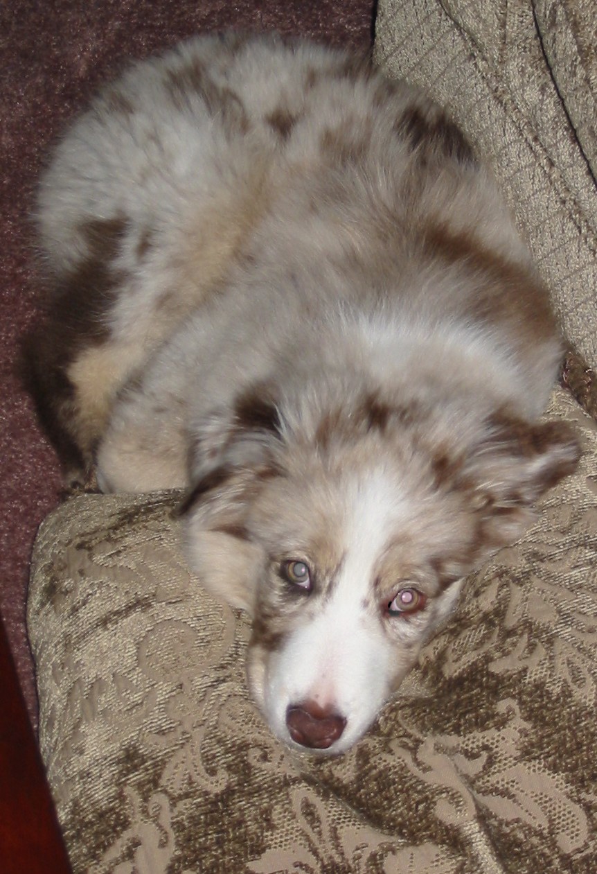 Here he is at 10 weeks the first day we brought him home. Doesn't he look sad