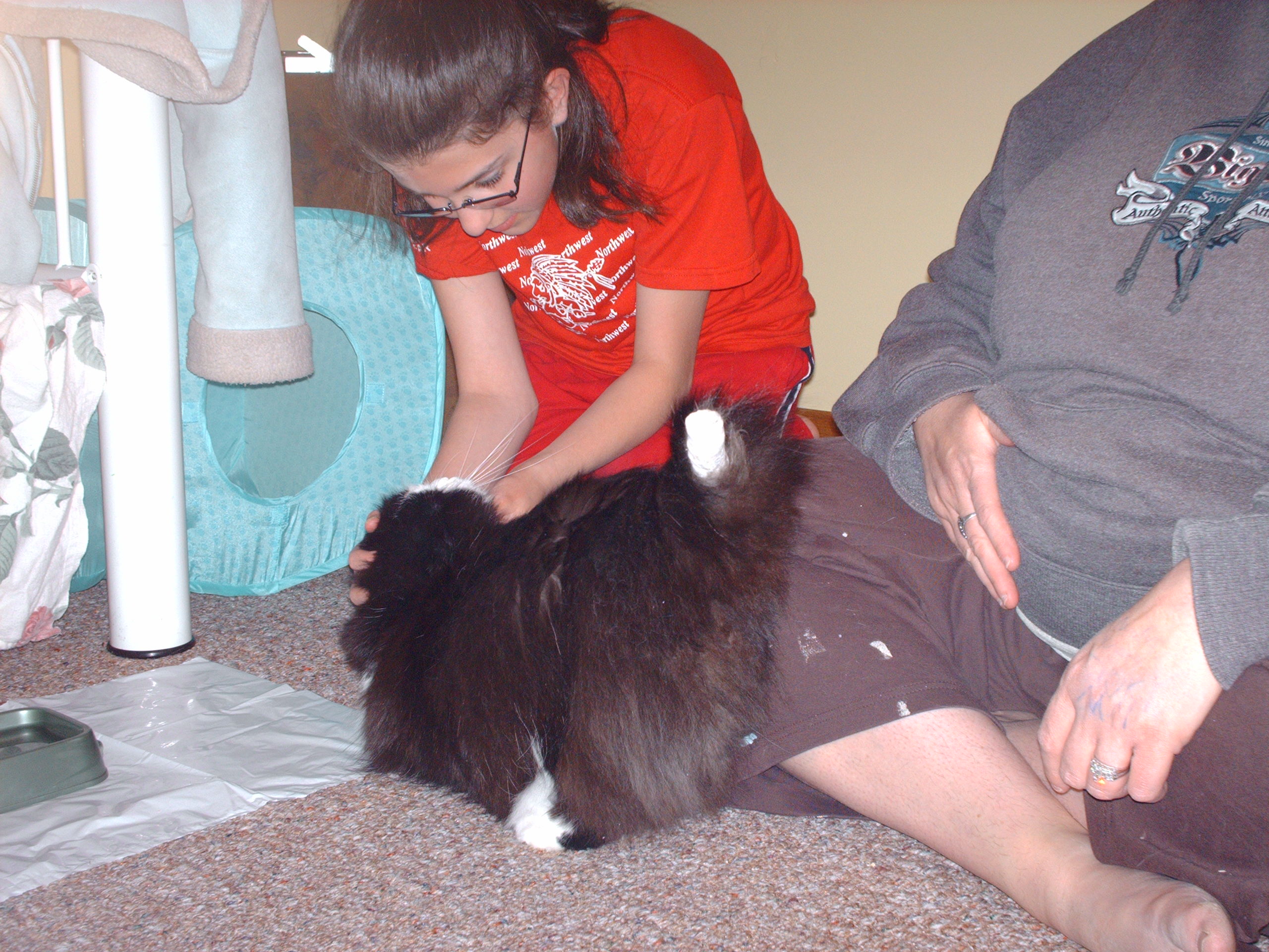 I apologize for not posting better pix. Kiara is definitely camera shy. She closed her eyes for many. She was hiding under the bed when I arrived, so I got down on all fours and softly called her name. She came out from under the bed and gave me head bumpies, then rubbed her face all over mine. She didn't want to be held but she loved being petted. And at one point, she even turned her tail to me as if to say "Look at what that dog did to me" and I shot the pix. (The woman said it's a stub but it clearly isn't. She's got a long tail and I'd say that 1/4 of it is gone.) Sorry, no Photobucket. It's been another long day and I just wanted to get pix of Kiara posted as quickly as possible. Thank you again, friends, for all your support. I just love a happy ending! Here she is: