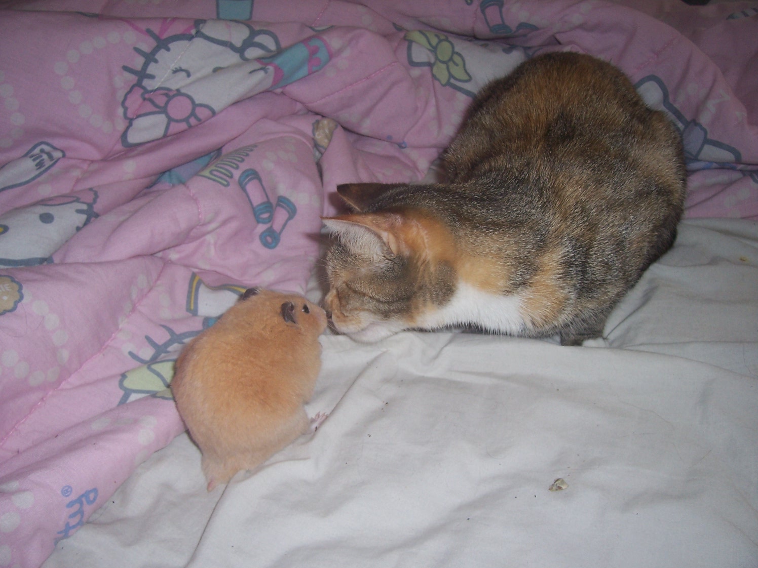 I just had Dipstick out playing with him and Gizzie was on my bed, and of course she was curious.