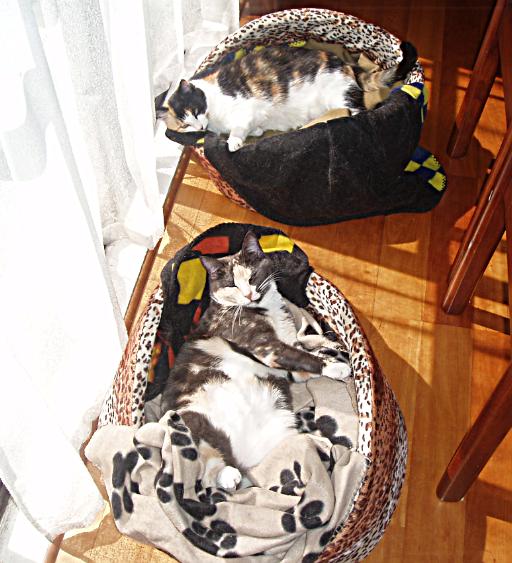 Glad to beable to share my girls and my boy, i am very proud of them all,yes Kim one sure can tell they are NOT spoilt at all can't you? he he,they love sitting in front of the ranchslider in the sun, so i put their beds there everyday when the sun is out, they usually get too hot and you will find them stretched out on the wood floor, which i think is nice and cool.