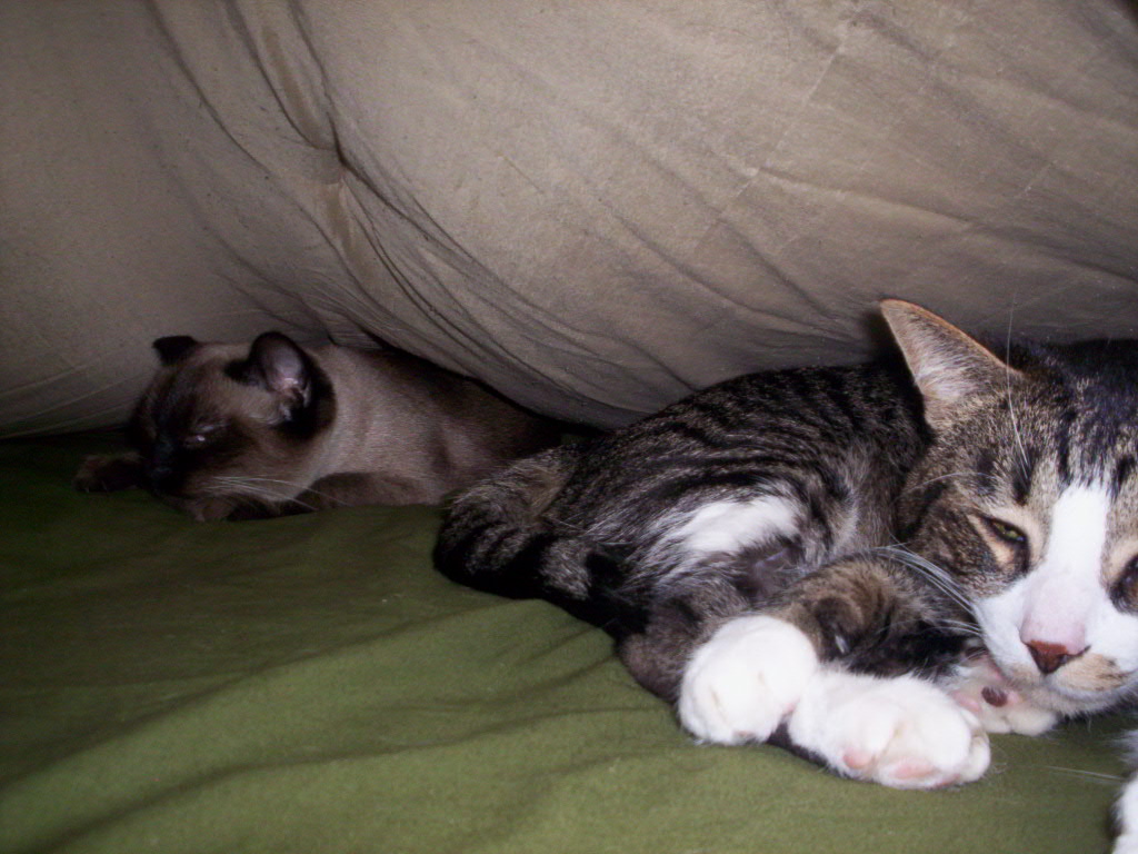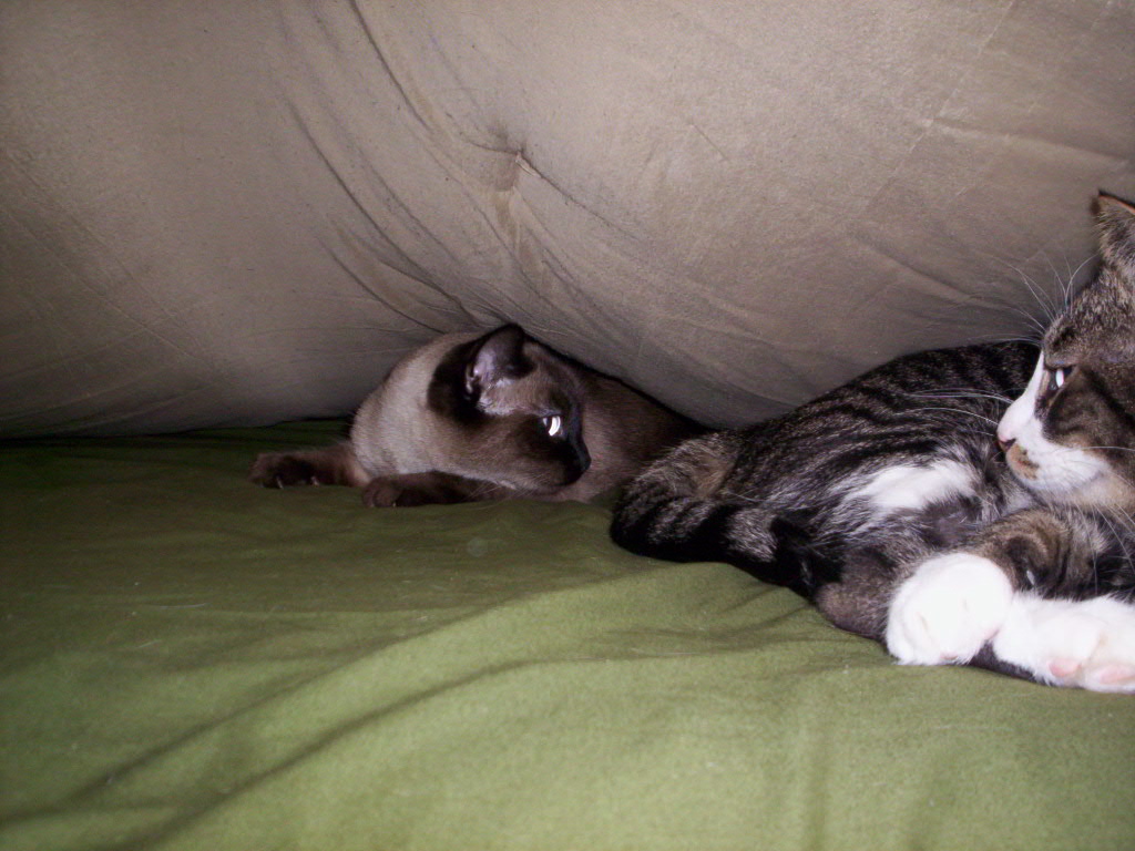 Poor widdle babies, hiding under the covers! But they DO look happy and content!