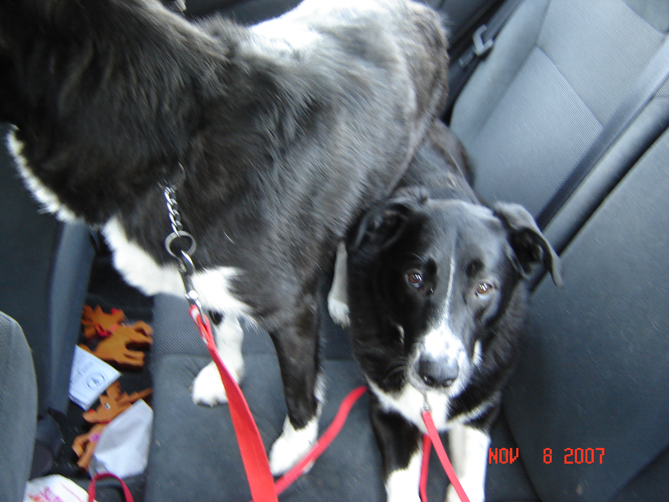 So I asked them if they wanted to go for a ride and both the boy and girl hopped in my car and we went over to my parent’s house just 1 mile down the road and my mom and I tried to figure out what to do with them. I drove around the neighborhood looking for anyone who knew the dogs and no one knew them. So I went to work and my mom helped take care of the dogs and I posted on every website I could think of saying I found 2 black/white dogs with no tags on them at the Shrine.