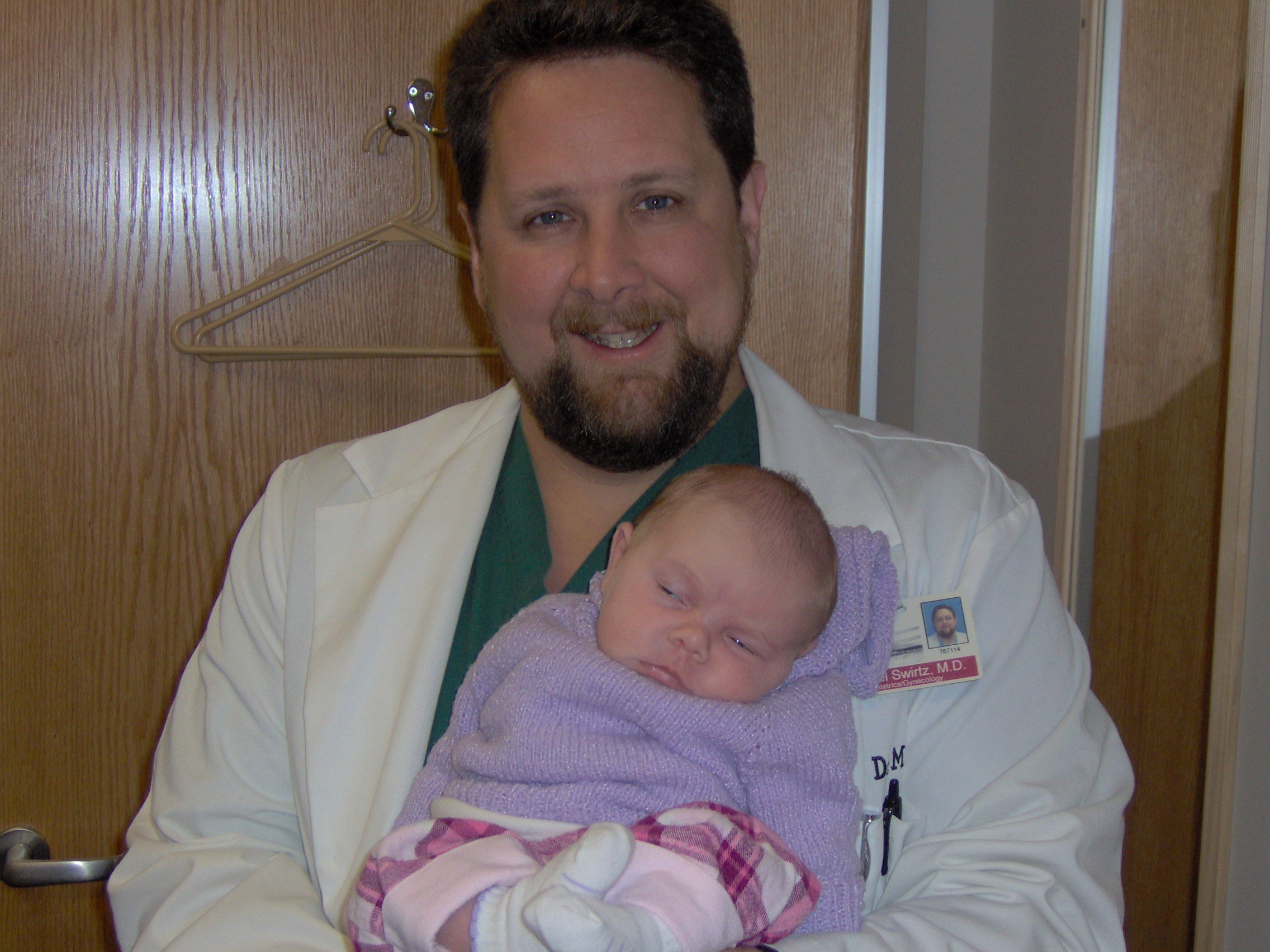 The first picture was taken shortly after she was born, the second is before they transfered to the hospital, she is 2 weeks in the third picture (I call this her 'wanna fight' picture) and the last one she is 4 weeks and she is with the wonderful doctor who delivered her and was mommy's ob/gyn.