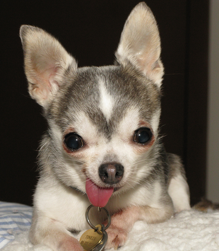 I first met Tinker the day before at the rescue organization annual alumni picnic. Tinker was originally rescused from the same puppymill as Rosy. Tinker was originally adopted by a college student in the Columbia MO area. After three months, the college student surrendered Tinker because she thought that Tinker was too hyper! Tinker hyper? I don't think so! Tinker just wanted attention and I don't think that the college student could give it to her. Today, Tinker is one spoiled rotten chi.