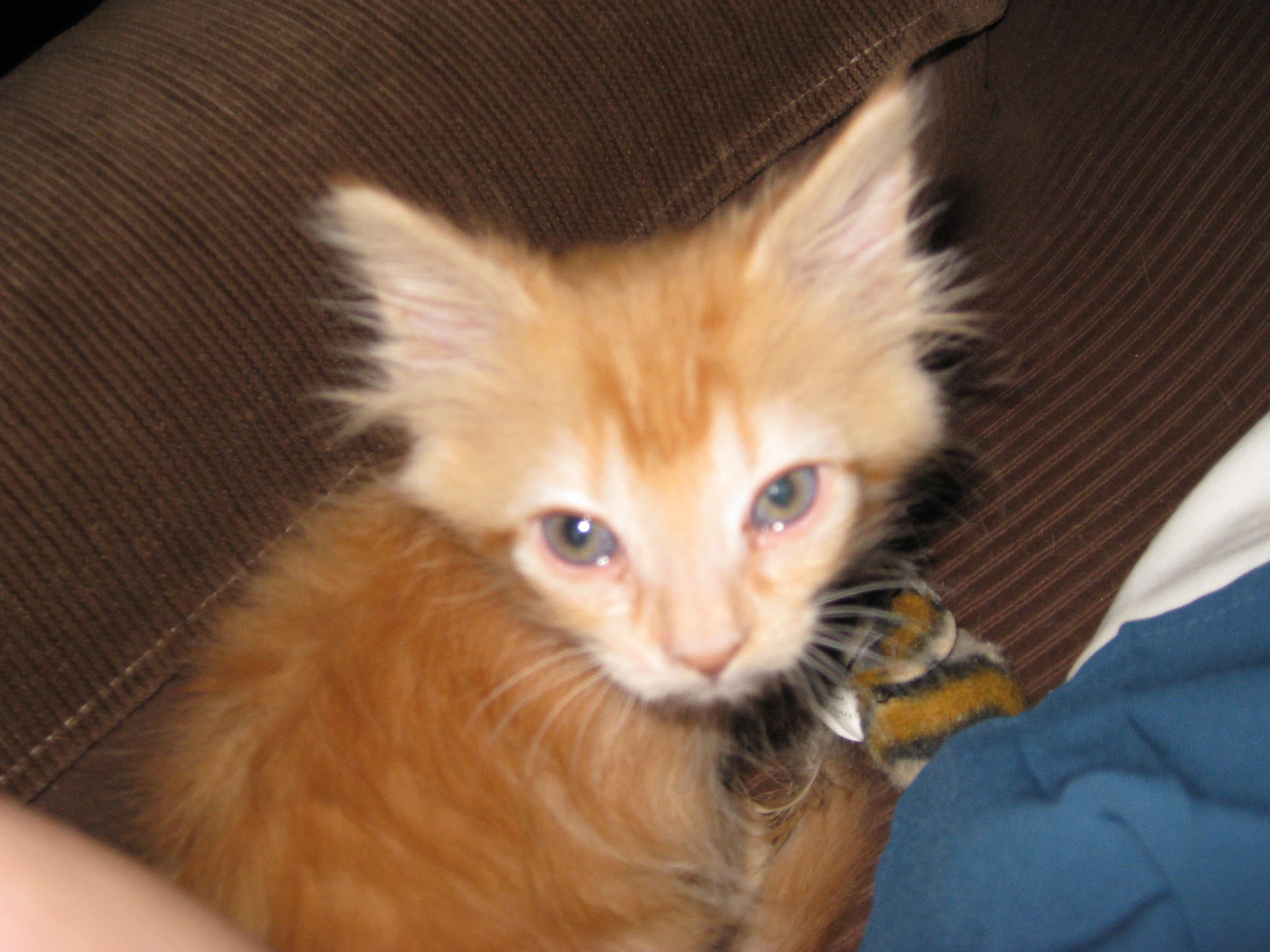 Well once again fostering has failed this family and we will be keeping our foster. Our baby turned out to be girl and not a boy. We have decided to name her "Jasmine". Her visit at the vet last week put her at 5 weeks and 1.2pounds. The rest of my gang has accepted her very well and almost everyone plays with her. Our 120 pound lab has appointed himself her guardian. He is obsessed with her and will not leave her alone. She is a pistol and has the most extraordinary personality. She plays endlessly like a baby until she passes out from exhaustion. She is loving, a purring machine, and little heathen at the same time. Watch out ankles and toes, she loves to attack. Here at some pictures of her from this evening.