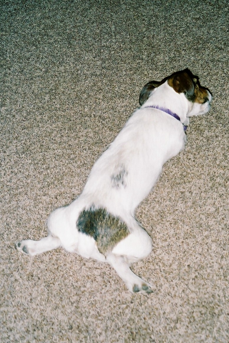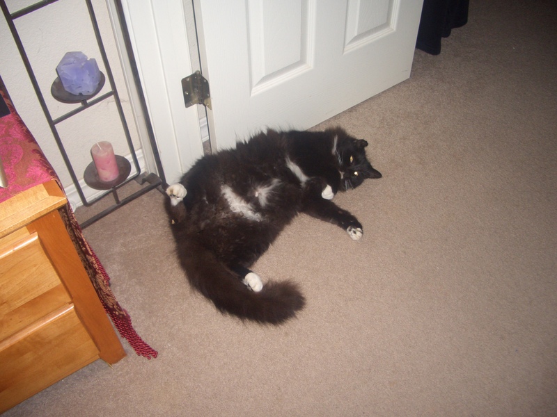 Karma posing as roadkill. Usually she is on her back, but I couldn't find a picture.