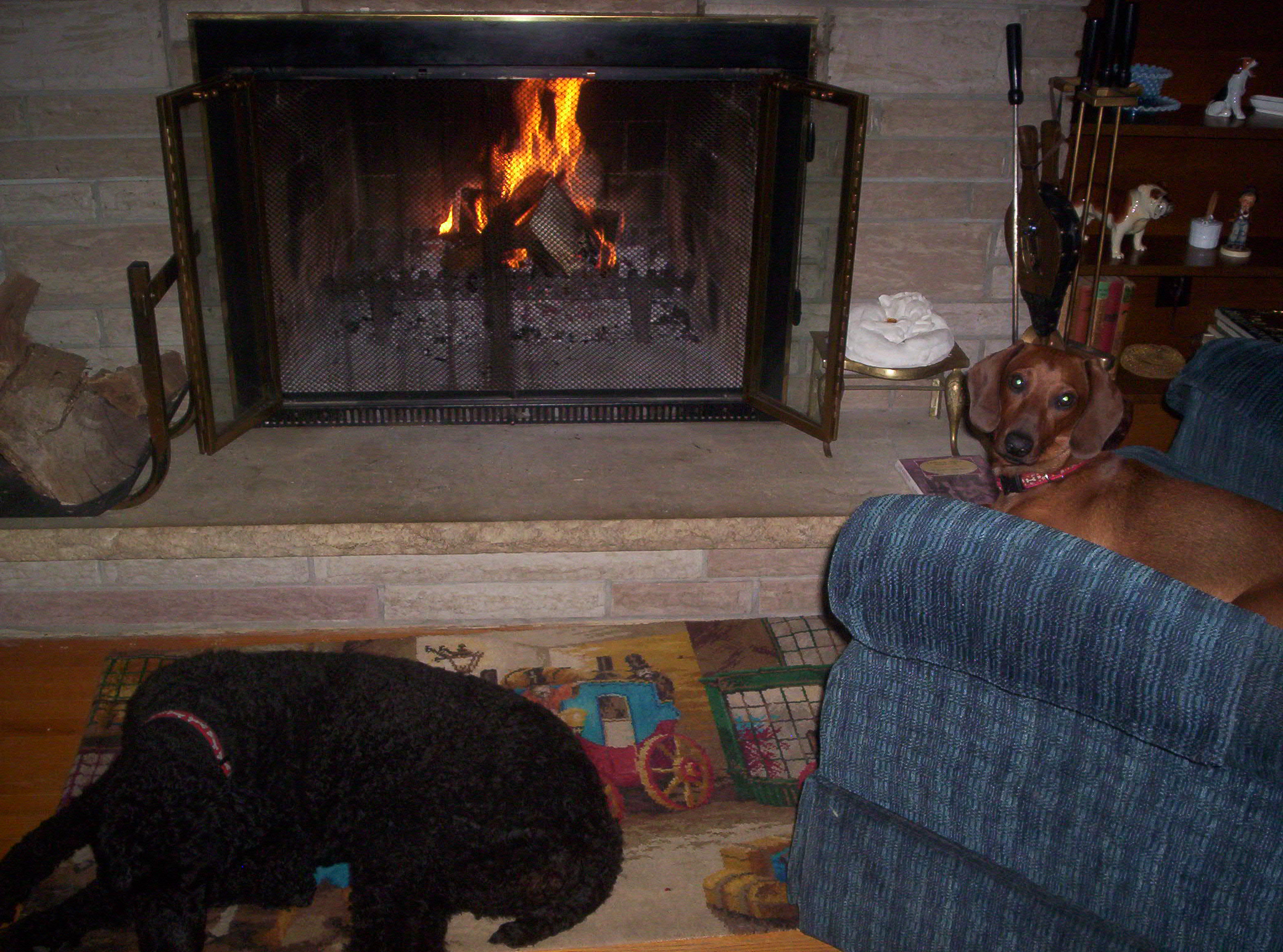 Henry and Bodea by the fireplace. Henry jumped up to take my place.