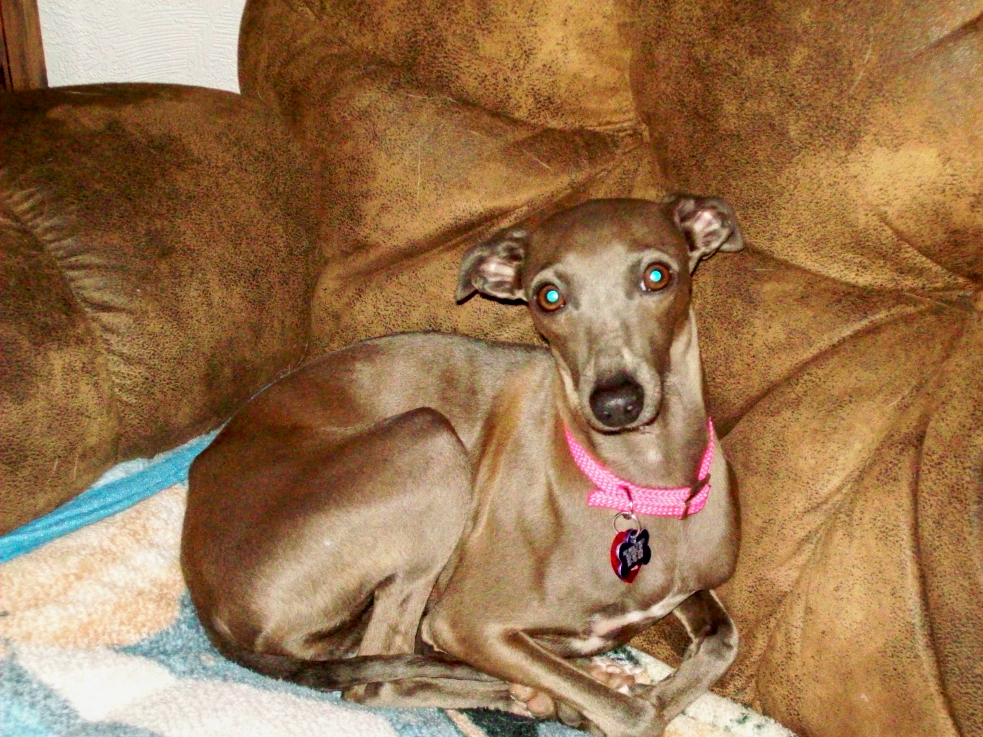 1. Gia says, "If you would take this stupid hot pink collar off of me, I would be perfectly disguised in this chair."