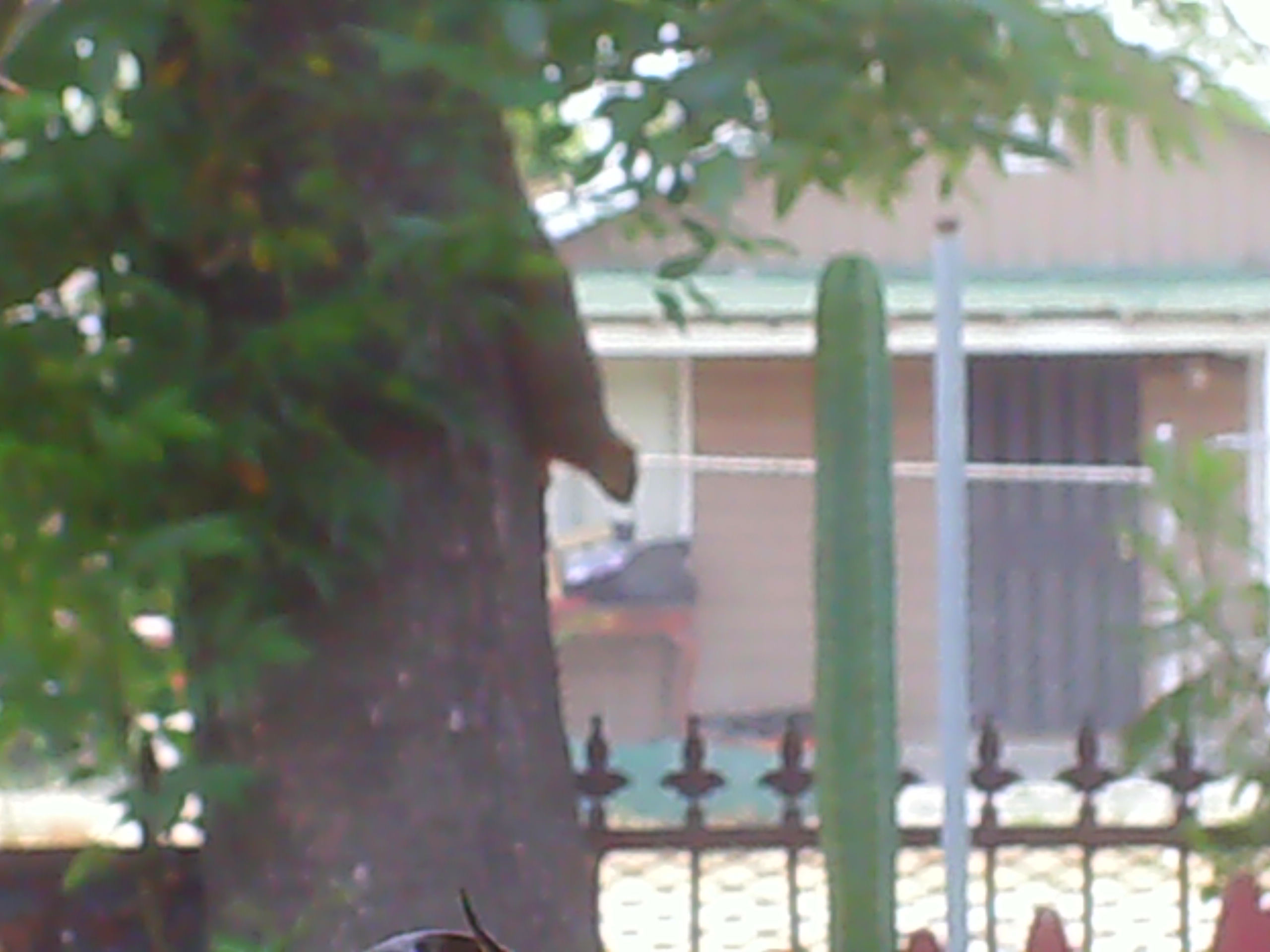 We looked at each other for about two minutes, me taking pictures and it, very quiet. I guess it was thnking me for scaring off the birds and dogs that were bothering him. After graciously allowing me to snap a few, he climbed off into the greenery!