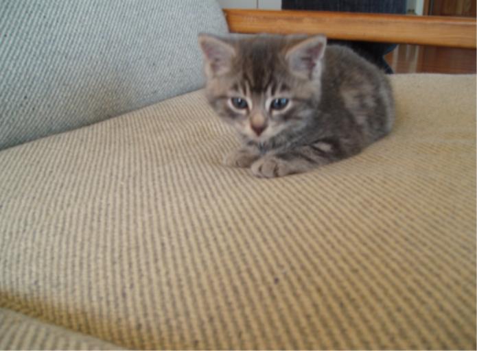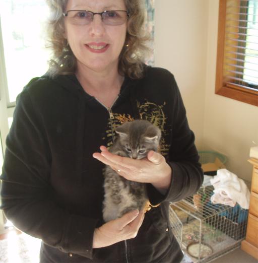 There is a big piece of land beside the furniture store,and one of the dogs was barking furiously, so she went to investigate and what did she find, the most gorgeous wee kitten, she looked everywhere for further siblings or the mother, there were none in site and judging by how well covered this baby is, we suspect it was the only one left and was being well looked after, she hesitated, wondering what to do ,but decided it was for the best to take the baby home, as it would just become a starving feral,and yes she is going to keep it.
