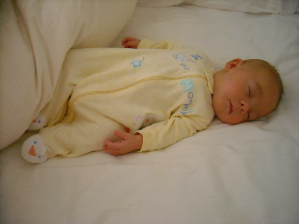 Wow, he's sweet How are the nights now ? Does Vince still have colics? I hope the 5 weeks with the two little ones and without Daddy were not too hard.