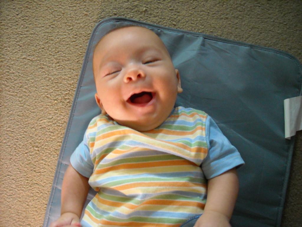 How time flies. My little 6 pound 4 ounce peanut is now a chunky, hunky, bundle of giggles. He was a rather difficult newborn. He had colic and he woke me every 40 minutes to 1 hour during the night for feedings for the first 8 weeks or so. He has grown into the most adorable, giggly, happy, laid back, easy going little boy, however. We are just so totally in love with him.