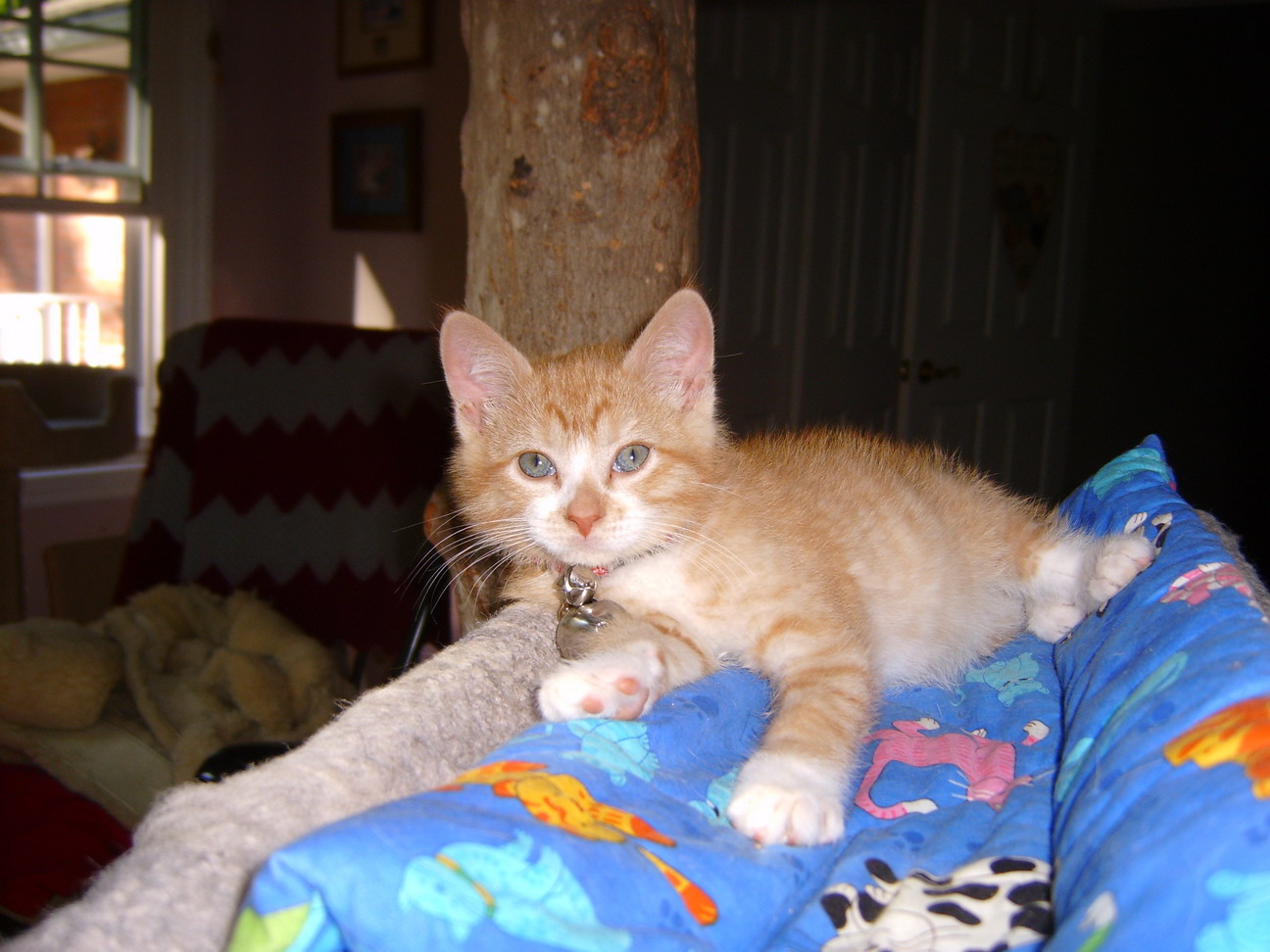 FYI: Ralph no longer wears the BIG bell!! I removed it from his collar about 3 days ago. Since he is a little bigger, comes out when called, and is MORE visible, I thought it was time for the BIG bell to go!!! He is quite the fella!!! We are so glad he is now one of the Clan Cats!!!!