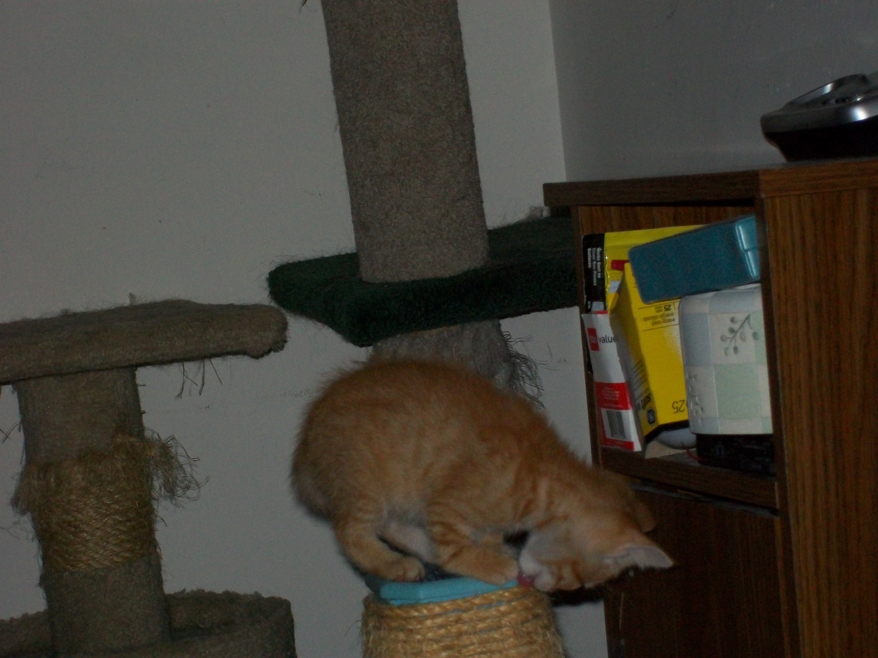 Apollo the little kitten we are supposed to be fostering, which is probably going to end up sticking around most likely is going to the vets today at 6 p.m. to get his second set of shots and to re-evaluate his paw.