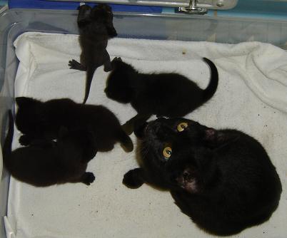 Ohhhhhh! A pile of blackies! I LOVE BLACKIES!!! The Mama looks exactly like my Samantha. They are all just so cute.