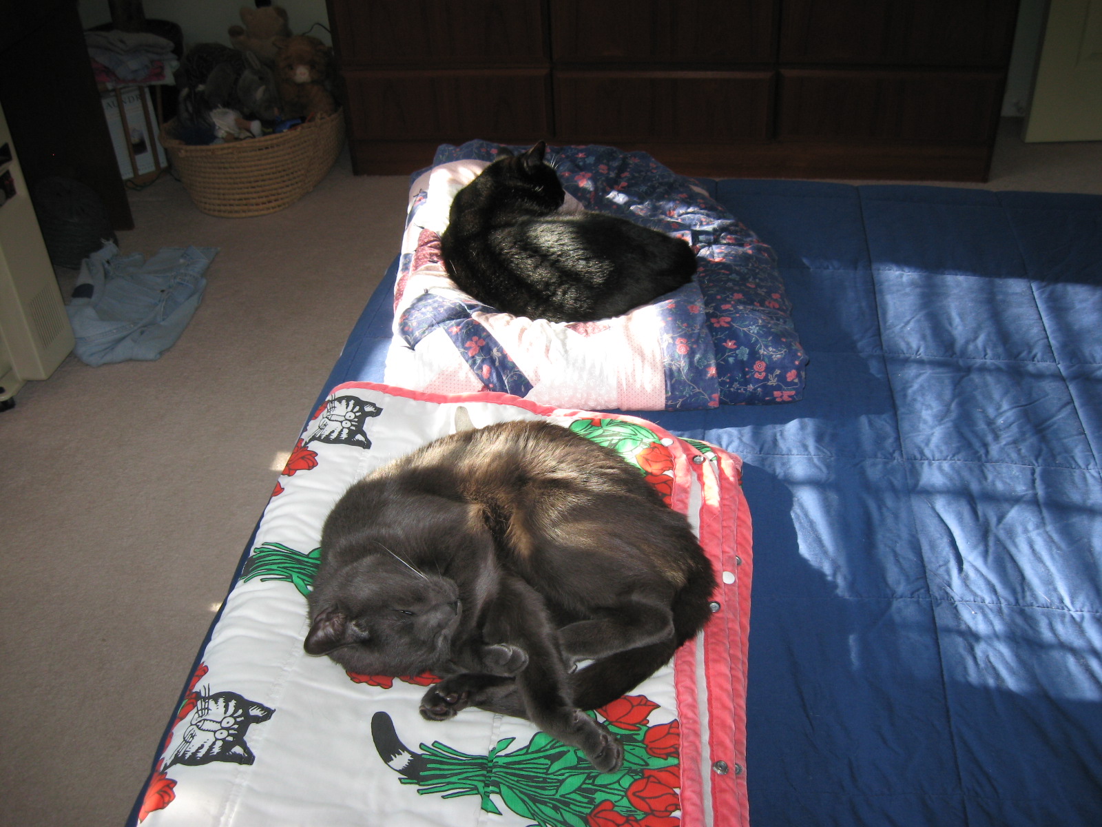 My cats do this every sunny afternoon on my bed.
