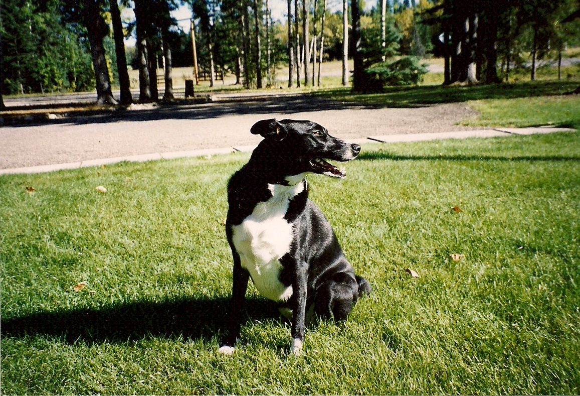 The single dog on the grass is Sami. She was my first own dog. She lived to be 12. I got her when she was 8 weeks old.